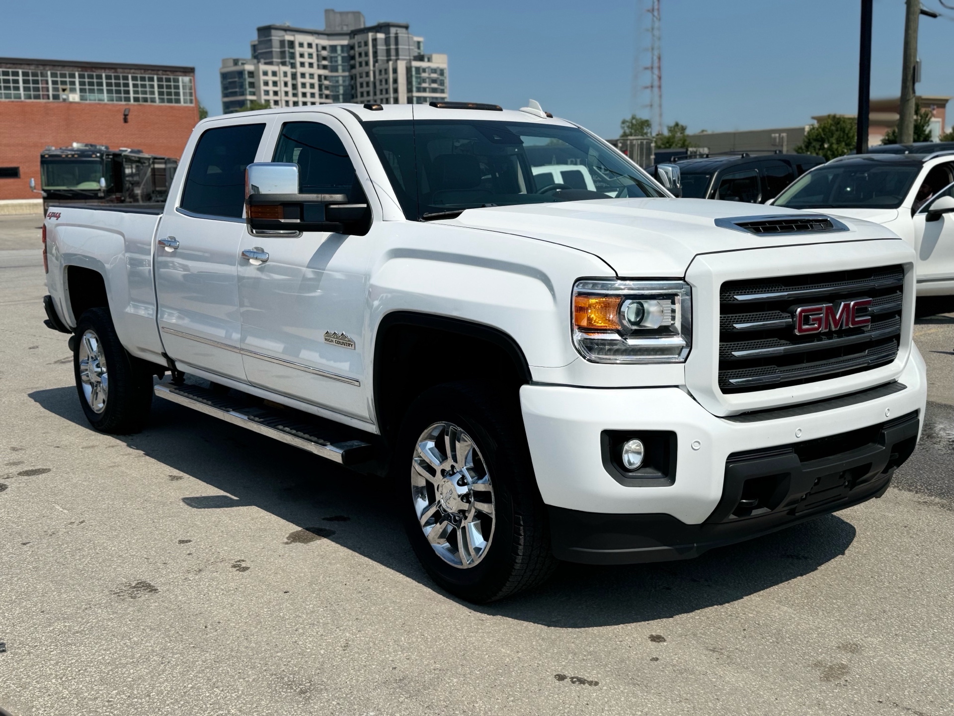 2019 CHEVROLET SILVERADO K2500 HIGH COUNTRY 240,000KM, IS A HIGH COUNTRY AND IS FULLY EQUIPPED WITH A DURAMAX V8 DIESEL ENGINE WITH ABSOLUTLEY AMAZING FUEL MILEAGE, ALISSON TRANSMISSION, APPLE CARPLAY AND ANDROID CONNECTIVITY, SUNROOF, HEATED AND COOLED SEATS, HEATED STEERING WHEEL, FULLY POWER EVERYTHING AND HAS BRAND NEW BFGOODRICH ALL TERRAIN TIRES, EVERY OIL HAS BEEN FULLY SERVICED AND MAINTAINED TO 100%. REBUILT TITLE